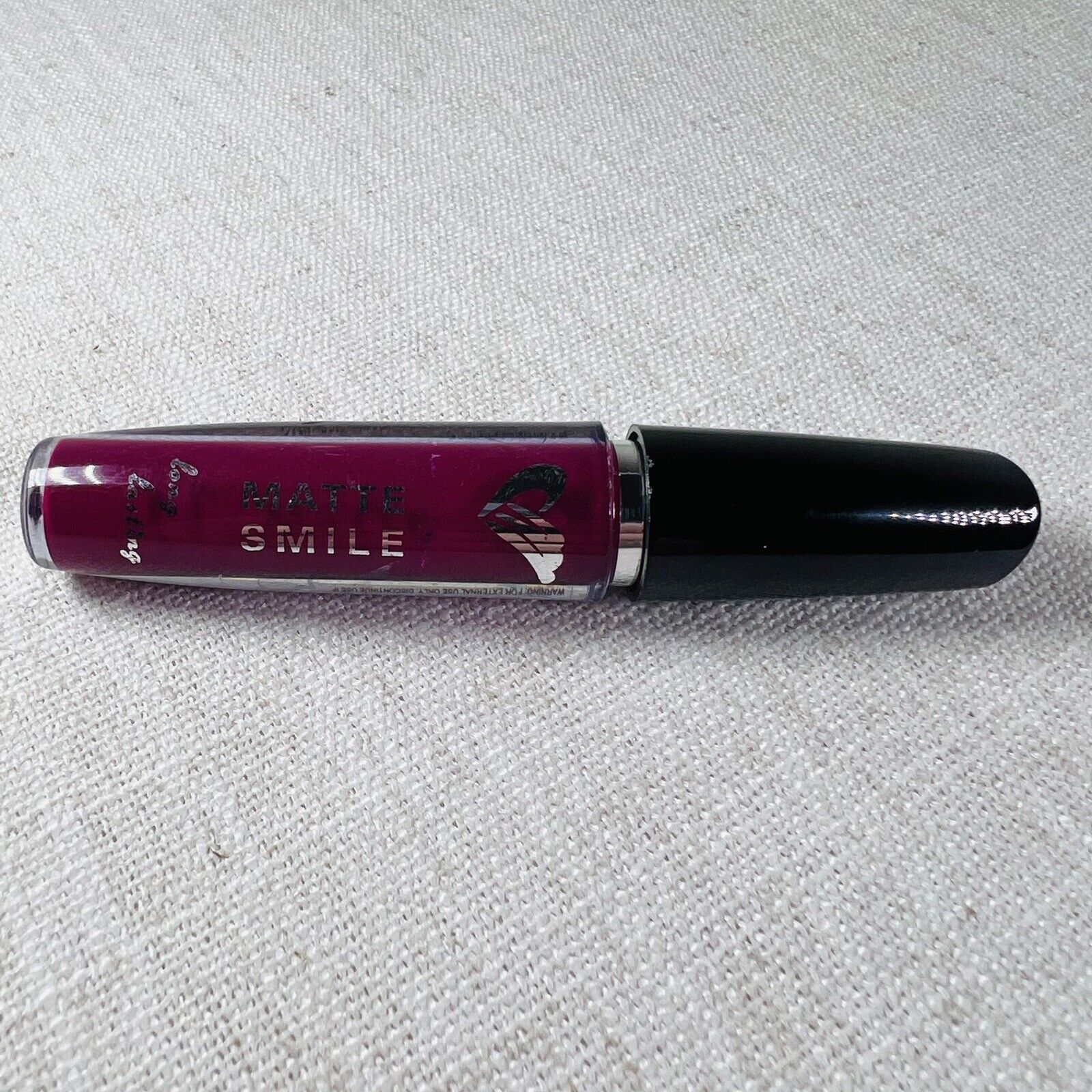 Amuse cosmetics, matte liquid lipstick. Purple shade (Pantsy Purple, HEX #78184A or Cardinal, HEX #8A244E).